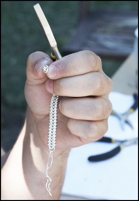 Silverkedjor tillverkade av egenproducerade silverringar och sammansatta utan lödning.